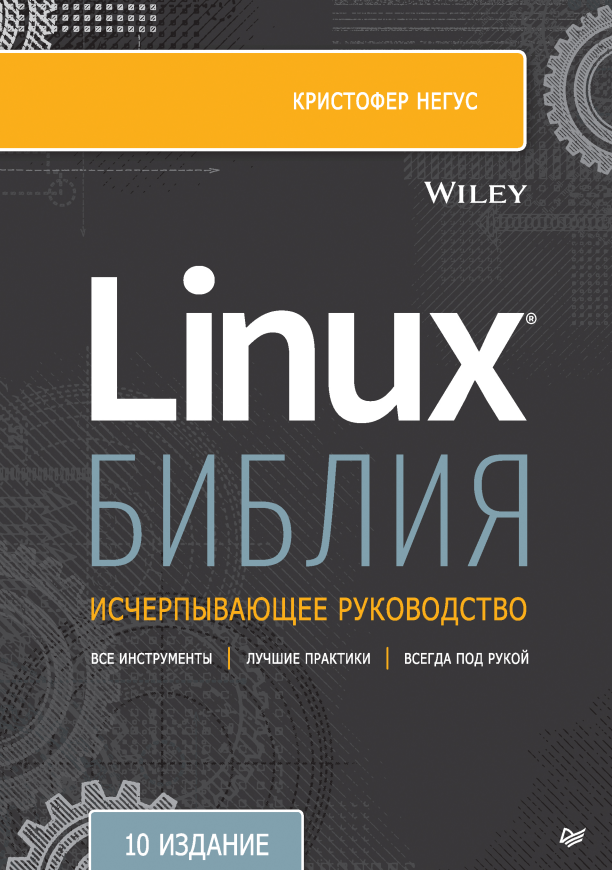 Библия Linux. 10-е издание. — СПб.: Питер, 2022. — 928 с.: ил. — (Серия «Для профессионалов»). ISBN 978-5-4461-1797-0 Полностью обновленное 10-е издание «Библии Linux» поможет как начинающим, так и опытным пользователям приобрести знания и навыки, которые выведут на новый уровень владения Linux. Известный эксперт и автор бестселлеров Кристофер Негус делает акцент на инструментах командной строки и новейших версиях Red Hat Enterprise Linux, Fedora и Ubuntu. Шаг за шагом на подробных примерах и упражнениях...