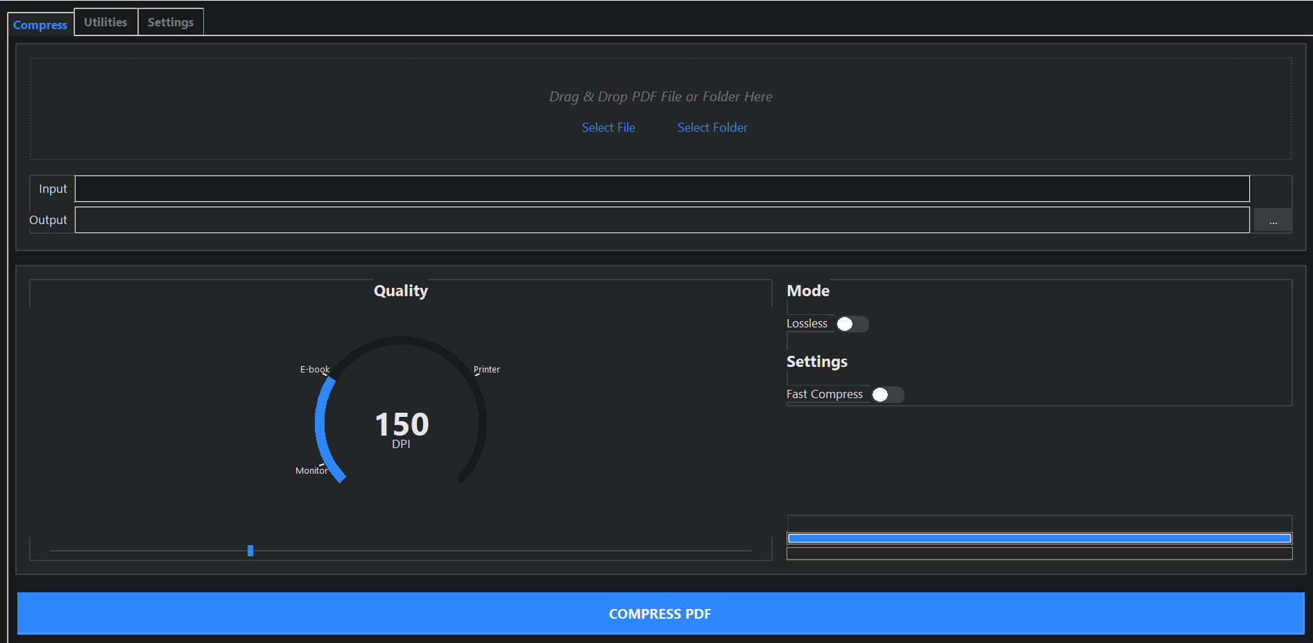 MinimalPDF Compress - это удобное приложение для Windows, предназначенное для упрощения сжатия PDF-файлов и выполнения служебных задач. Он использует возможности нескольких лучших в своем классе серверных систем, включая Ghostscript, cpdf, oxipng, pngquant, jbig2, zopfli и другие, объединяя их в единый интуитивно понятный интерфейс.