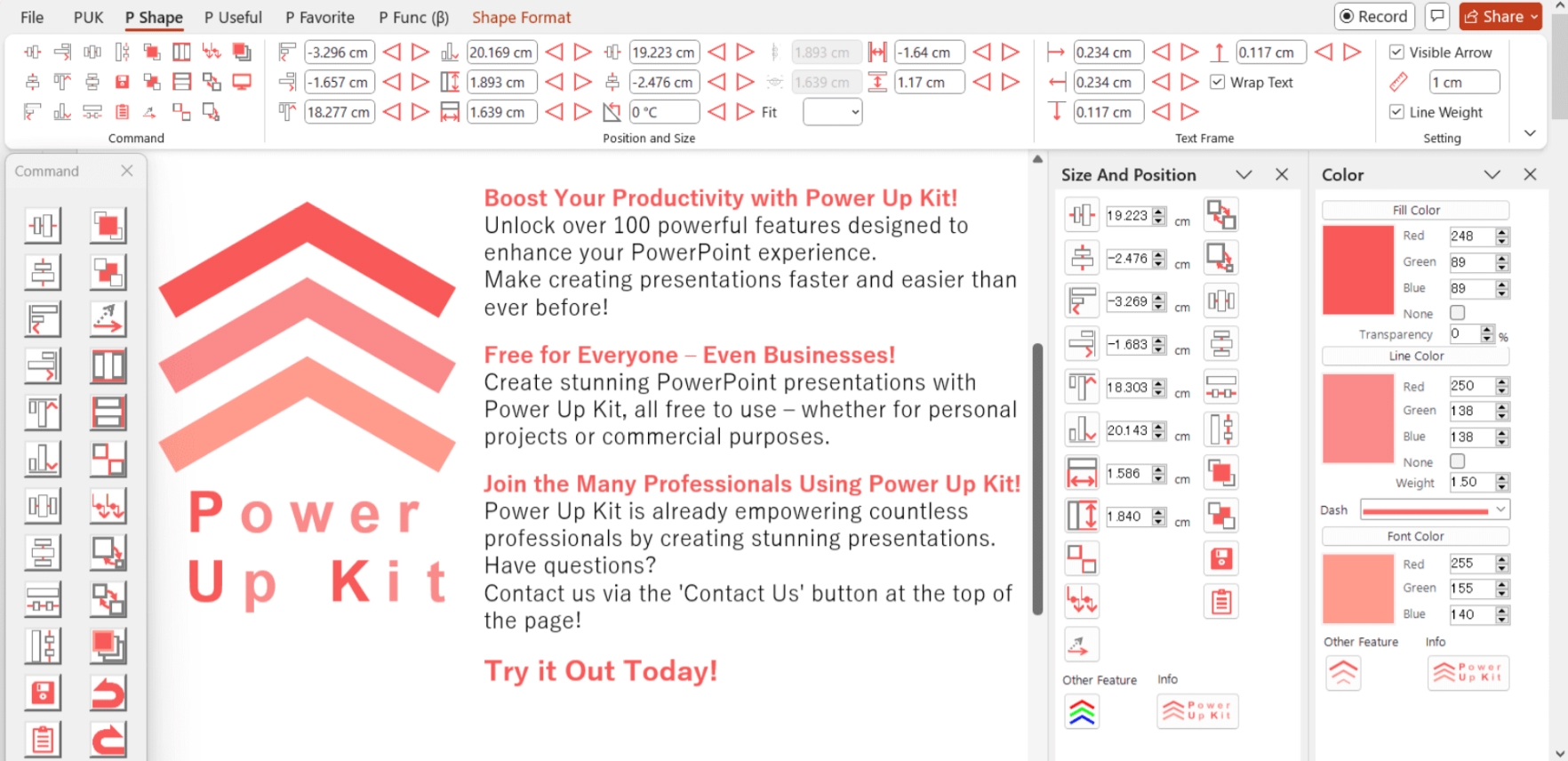 Power Up Kit — это профессиональное расширение для Microsoft PowerPoint, которое добавляет в программу инструменты для точного контроля над элементами презентации.