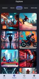 Сгенерировать обои по запросу: «Город в стиле киберпанк», «Умиротворяющий космический пейзаж», «Абстрактные розовые волны».
