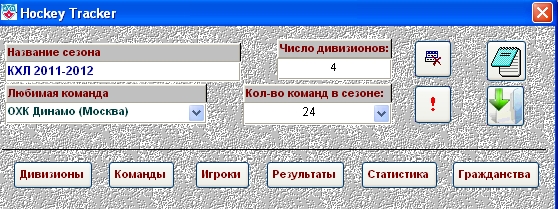 Эта программа предназначена для ведения статистики чемпионатов по хоккею с шайбой (КХЛ).