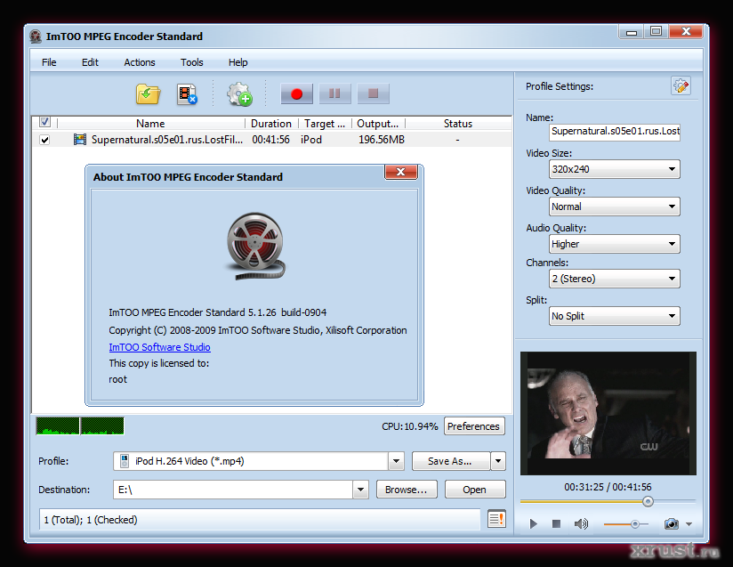 Мощная утилита для конвертирования видео-файлов. ImTOO MPEG Encoder позволяет конвертировать файлы любых форматов, таких как AVI, MPEG, DivX, WMV, MP4, MOV, FLV, 3GP, PSP MPEG-4, iPod MPEG-4 и другие. Помимо этого программа может извлекать аудиодорожку из видео-файлов, конвертировать большинство популярных звуковых форматов, таких как MP3, WMA, WAV, AAC, M4A и другие. С помощью ImTOO MPEG Encoder можно быстро и с высоким качеством конвертировать любой файл в мобильные форматы 3GP, FLV, PSP, Zune...