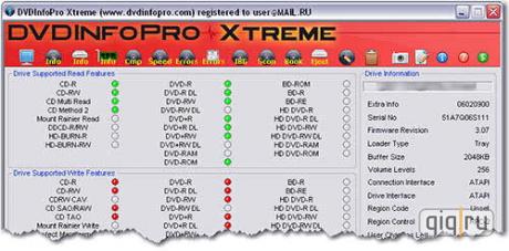 DVDInfo Pro - утилита для тестирования и получения подробной информации о CD/DVD, Blu-ray и HD-DVD-приводах и диках. Кроме этого, данная программа позволяет тестировать установленные в привод компакт-диски и DVD, а также быстро стирать и форматировать диски DVD-R/RW и DVD+R/RW. Поддерживаются практически все виды приводов, включая DVD+R DL (Double Layer), и все виды дисков, включая Blu-ray и HD-DVD. DVDInfoPro - это, конечно, не лекарство.