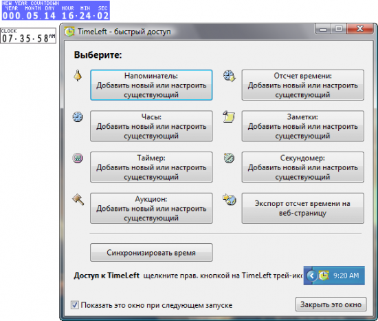 TimeLeft - уникальная программа: она предлагает множество возможностей и настроек и в то же время остается простой и интуитивной в использовании. Установите TimeLeft и Вы будете приятно удивлены разнообразием предлагаемых возможностей: Напоминатель позволяет планировать самые разнообразные события: от наиболее простых (разовых) до сложных (повторяющихся, состоящих из многих правил). Напоминатель является одной из наиболее мощных функций программы. Системные часы - эта функция позволяет заменить ...