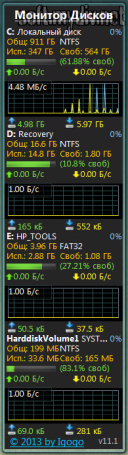 Мониторинг состояния дисков: Drives Monitor предоставляет детальную информацию о состоянии ваших жестких дисков, включая температуру, скорость передачи данных, общий объем данных, доступное пространство ...