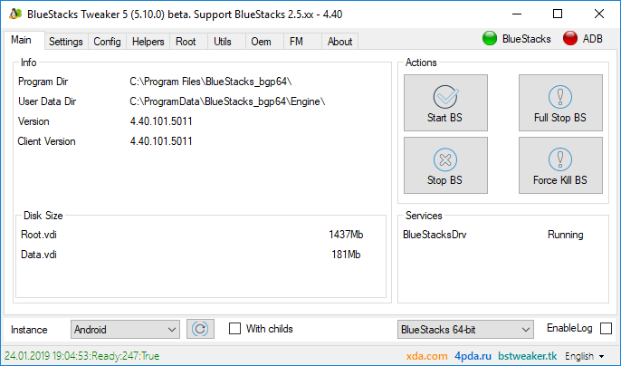 BlueStacks Tweaker - приложение для работы с BlueStacks, предназначено для детальной настройки и изменений практически всех параметров эмулятора.