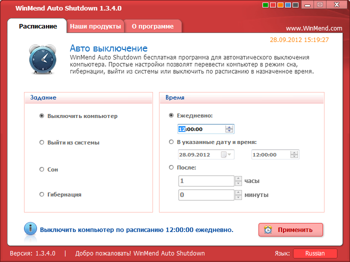 WinMend Auto Shutdown - отличная программа для автоматического выключения компьютера с простым, понятным и удобным русским интерфейсом. Возможность по таймеру или по расписанию выключать ПК, завершить сеанс, перевести в спящий или ждущий режим. В программе отсутствуют раздражающие всплывающие окна, всякие надоедливые рекламные баннеры и доступна для бесплатной распространении. Так же имеется возможность изменить цвет интерфейса (зеленый, красный, желтый, синий, черный). Если Вы искали самый простой...