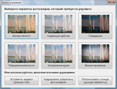 Следующая программа для обработки фотографий - PhotoBEST, она предлагает три варианта. Один из них - обработка в автоматическом режиме, доступном через пункт "Улучшение". Этот режим для "ленивых" позволяет выбрать один из шести вариантов обработки. Второй вариант - работа с отдельными параметрами изображения (баланс белого, освещения, резкости и так далее). Все функции доступны через каталог улучшений. Третий вариант - точная обработка. Наиболее интересный, но и более сложный режим работы. С помощью точной обработки можно оптимально настроить различные параметры фотографии, применив это только к нужным частям изображения.