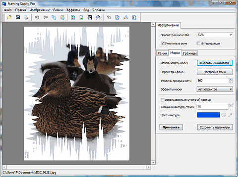 Наименее разнообразна в использовании рамок программа со строгим и предполагающим много возможностей названием - Framing Studio Pro. Вроде бы профессиональная должна быть, а кроме стандартного набора рамок, масок и границ ничего дополнительного не предлагается.