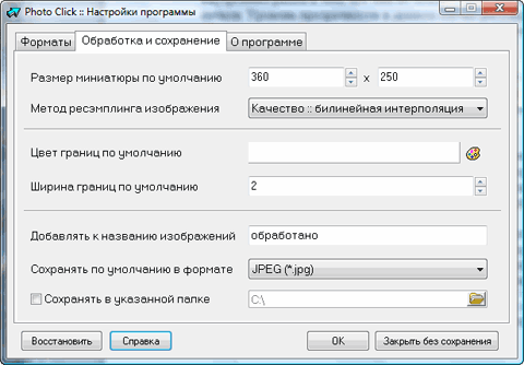 Тех, кто не любит работать через графический интерфейс, наверняка заинтересует программа Photo Click. После установки она добавляется в контекстное меню и обработку фотографий можно выполнять через него. Возможностей довольно много. Можно конвертировать формат изображения. Можно создавать миниатюры (размеры настраиваются в программе заранее), изменить размер или выполнить обрезку изображения, можно настроить яркость, резкость, цветовой баланс. Все ли удобно выполнять через контекстное меню, не уверен, но любители такой обработки наверняка найдутся.