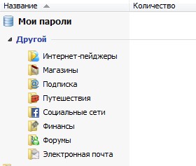 Менеджер паролей – главное окно программы, в котором отбражаются информация об учетных записях, пароли, номера и другие конфиденциальные данные пользователя.