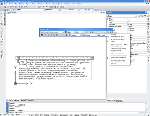 В последней версии стало значительно удобнее работать с многострочными текстами - механизм управления позволяет выбирать стили, шрифты, размеры, задавать выравнивание текста и иные настройки, необходимые для нужного вам форматирования. Но вы можете импортировать текст из внешних файлов, добавляя его на чертеж в виде многострочного объекта (такой вариант удобен при вставке комментариев, аннотаций и других больших текстов).