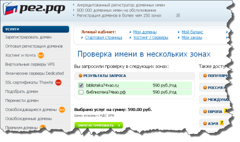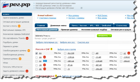 В качестве регистратора мы выбрали крупный российский портал REG.RU (или, как у них по-модному написано на логотипе, "РЕГ.РФ").
