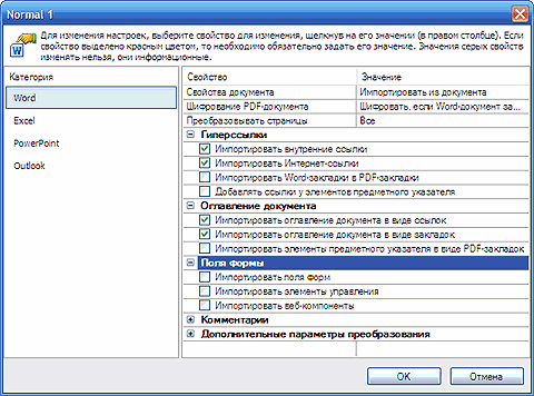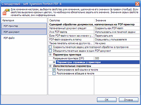 Управление процессом формирования PDF-документа осуществляется с помощью настроек. В нем есть предустановленные режимы вывода - в файл, на печать, для размещения в Интернете и другие. Так, при выводе в файл в настройках можно задать принцип формирования имени файла, путь для его сохранения и ряд других настроек.