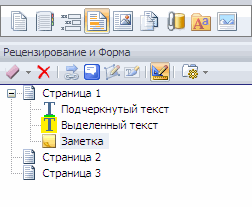 Отдельные части документа можно выделять с помощью цвета (инструмент "карандаш"). Для разных ситуаций можно установить разные цвета, прозрачность, информацию о том, кто сделал отметку. А удалить выделение (или любые иные отметки, сделанные "карандашом") очень легко с помощью инструмента "ластик".