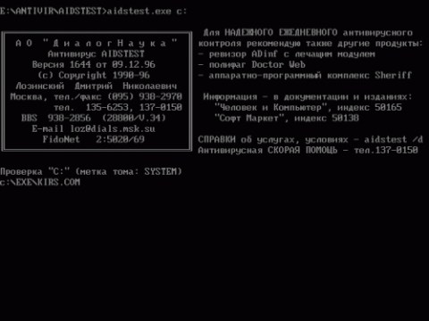 | | Один из первых отечественных антивирусов-фагов - знаменитый в прошлом Aidstest |