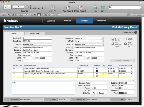 Если в MS Access или FoxPro работа над проектом - это взгляд изнутри, и вам нужно иметь четкое представление о том, как функционирует база данных, то FileMaker - это, скорее, взгляд снаружи. FileMaker предлагает вам сосредоточиться на формировании внешнего представления базы данных, то есть, на интерфейсе. Остальное FileMaker практически полностью берет на себя. Если вы не хотите даже разрабатывать интерфейс, вам сразу предоставляется стандартный, и вы получаете доступ к мощным инструментам отображения и поиска данных для начала немедленной работы с БД. С другой стороны, если вы желаете, то можно углубляться в суть процессов и наполнять ваш проект дополнительной функциональностью, позволяя вам самостоятельно определять приемлемые для вас уровни сложности взаимодействия с СУБД.  | | Система бухгалтерского учета малого предприятия созданная на FileMaker |