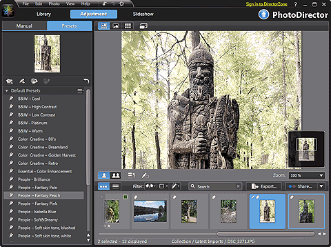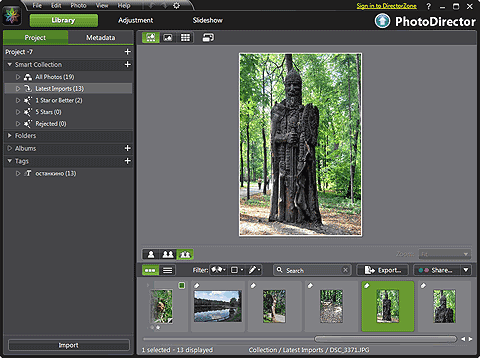 Итак, прежде чем вы сможете приступить к обработке ваших фотографий в программе PhotoDirector 2011, импортируйте их в хранилище программы. При импорте можно как оставлять фотографии на своих исходных местах (если они расположены на вашем жестком диске), так и копировать их в хранилище, например, когда импорт выполняется с цифровой камеры или с карт-ридера. Если фотографии остаются на своих местах, то в хранилище добавляются их уменьшенные копии для размещения в панели предварительного просмотра.