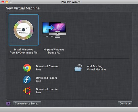 - новый Мастер Parallels, который позволяет создавать и импортировать виртуальные машины, переносить данные с ПК, использовать Boot Camp и бесплатно скачивать готовые виртуальные машины с Ubuntu, Fedora и Chrome OS;