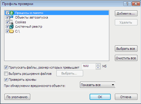 Есть еще один способ сокращения времени сканирования — создать собственный профиль сканирования, который будет проверять только те области, которые вы считаете критическими. Установив свой профиль проверки, вы защитите нужные вам зоны, ограничите время проверки и снизите нагрузку на компьютер.