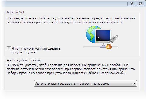 | | Agnitum ImproveNet — это база данных сетевых приложений и правил их работы |