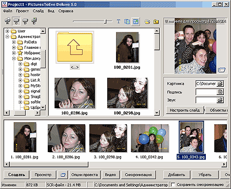 Программа PicturesToExe Deluxe позволяет создавать разнообразные слайд-шоу из ваших фотографий, накладывать на них музыкальное сопровождение, преобразовывать в скринсейвер или видеофайл. Рассмотрим, как в программе решаются эти задачи.