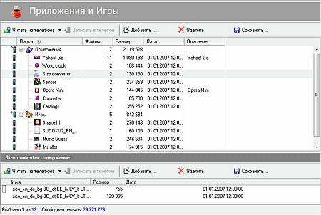 В телефонах Nokia приложения и игры (как, впрочем, и на большинстве других телефонов) разработаны на языке Java. Сохранив данные телефона в программе, вы можете выгрузить приложения и их отдельные файлы на диск и работать с ними, а затем загрузить обратно. Аналогично, если у вас появится новая игра или приложение, можно загрузить их в программу, а через нее — на телефон.