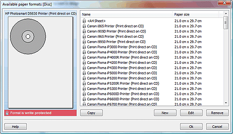 Второе существенное обновление программы связано опять же с дополнительными ее возможностями. На сей раз - с возможностями по формированию вкладышей для дисков всевозможных форматов, а также накаток на сами диски. Что в этих опциях интересного? После выбора варианта печати становится возможным выбор бумаги и принтера. Для всех вариантов печати по умолчанию применяется стандартный формат - А4, но предлагаются и варианты использования специальных принтеров, предназначенных для печати вкладышей и выполнения печати на дисках. Форматы печати для таких принтеров являются предустановленными и из программы изменяться не могут. Но если ни один из предложенных форматов вас не устраивает или вы используете иной принтер, то сможете сформировать свой собственный формат и печатать с его настройками.