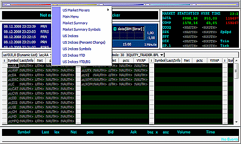 Для удобства в программе можно сформировать информационную панель так, как вам будет наиболее удобно. И таких панелей можно создать неограниченное количество - затем переключаться между ними с помощью, например, "горячих" клавиш. Информационные связи в программе созданы таким образом, чтобы по одному щелчку вы могли получить максимум данных о событии, которое вас заинтересовало (к примеру, резкое изменение цен "потянет" за собой подборку новостей от агентства Рейтер, напрямую повлиявших на изменение стоимости ценных бумаг). Здесь же может быть выведено и биржевое табло, по которому можно отслеживать постоянно изменяющуюся ситуацию на рынке.