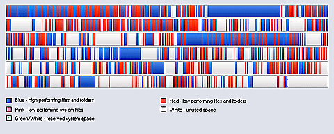 Но далеко не все файлы или разделы диска могут быть дефрагментированы в процессе работы системы. К таким элементам можно отнести файл подкачки и MFT (master file table). Для оптимизации их размещения на диске Diskeeper предлагает использовать технологию Boot-Time Defragmentation. Она поддерживает выполнение трех независимых задач: дефрагментацию разделов, дефрагментацию MFT и дефрагментацию файла подкачки. Эти процессы выполняются при загрузке системы, когда ее работа еще не началась. Эти операции могут занимать значительное время, особенно при использовании дисков больших объемов, поэтому рекомендуется запускать эту задачу в то время, когда компьютеры используются в минимальной степени.