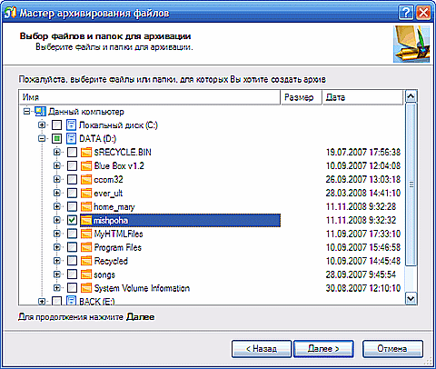 Немного иначе выполняется восстановление отдельных файлов. Здесь придется выбирать исходный архив через "Проводник", а затем выбирать в нем нужные для восстановления файлы. Файлы записываются в буфер обмена, через который они в дальнейшем переписываются в исходную позицию (сменить место для сохранения файла нельзя). "Проводник" для работы с файлами в архиве выполнен неудачно - в нем совершенно невозможно работать с многоуровневыми разделами, их просто не видно в окне.