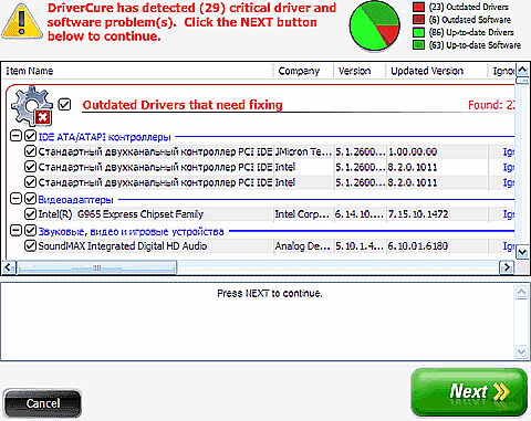 Для своевременного обновления программ и драйверов для таких ситуаций требуется иная технология - автоматизированная. При которой не человек отслеживал бы появление обновлений, а специализированная программа, с определенной периодичностью проверяющая наличие новых версий в точках обновления самых разных вендоров. И не только проверяющая, но и решающая задачу скачивания обновленных версий и их установку. Такая технология реализована в программе DriverCure компании ParetoLogic.