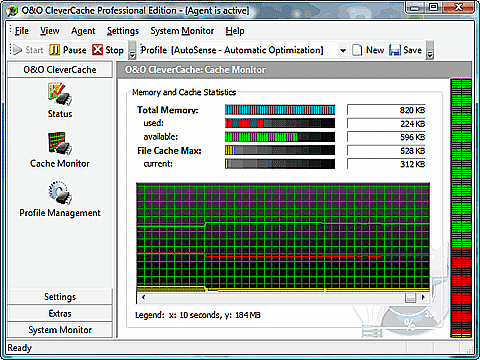 Целый ряд программ, предназначенных для решения таких задач, выпустила компания O&O Software GmbH. Одна из них - CleverCache - предназначена для оптимизации работы системы кеширования файлов. Работает под управлением операционной системы Windows (включая Vista). Самое главное ее преимущество в том, что ее можно установить и не вмешиваться в работу, - все, что требуется, она будет выполнять сама. После установки программа показывает основное окно фактически лишь с одной целью - дать представление пользователю о том, как изменяется нагрузка на память и кеширования после того, как она начинает работать. В дальнейшем пользователю совершенно необязательно открывать это окно, программа будет работать в фоновом режиме, как сервис.