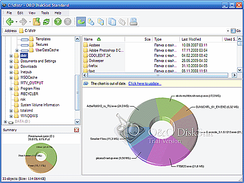 Эта программа позволит с помощью простого и удобного интерфейса разобраться в вопросе, сколько места занимают на диске папки и файлы. Порой после длительного использования компьютера на диске накапливается множество различных файлов, которые, занимая существенное место, никогда вам и не понадобятся. Найти их и удалить, освободив место для новой информации, - задача не из легких. А вот с помощью программы DiskStat решить ее существенно проще. (Кроме того, программа умеет находить самый старый и самый новый файл в папке, что тоже может иногда пригодиться.)