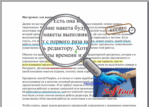 Отдельно надо сказать об инструменте, который позволяет в уже сформированном PDF-файле корректировать текст - изменять его, удалять, добавлять, а также, используя строку как объект, разворачивать на угол, поворачивать вокруг горизонтальной или вертикальной оси - словом, работать с текстом почти как в текстовом редакторе.