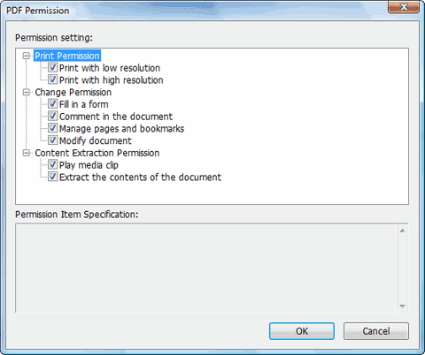 В полном объеме - как и в Adobe Acrobat - реализованы возможности защиты PDF-файлов, шифрования и подписи. С помощью пароля можно ограничить доступ как к файлу, так и к отдельным параметрам доступа к информации, в нем находящейся. Если установлено ограничение доступа к файлу на основе пароля, то только человек, знающий этот пароль, сможет открыть и просмотреть файл. Установка такого пароля не означает, что он автоматически используется и для разграничения доступа к информации. Для этого используется другой пароль (фактически они могут быть одинаковы, но назначаются раздельно).