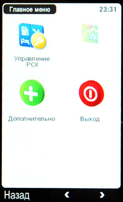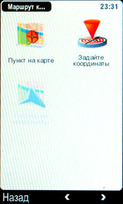 Для прокладывания маршрута необходимо прикоснуться к экрану. Появится основное меню программы, расположенное на двух страницах.