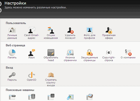 С помощью этого раздела можно выполнить настройки сайта для его обработки в поисковых машинах. Что это предполагает? Дать название и подзаголовок сайта, включить метатеги для описания сайта и ключевых слов, разрешить редактирование описаний графических изображений, подключить блок Google Analytics.
