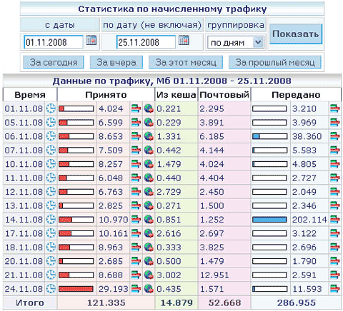 Кроме основных счетчиков, которые учитывают входящий и исходящий трафики, трафики из кеша и почтовый, существуют и дополнительные счетчики, данные которых необходимы для вывода различной диагностической информации. Учет данных дополнительными счетчиками ведется на основе специальных фильтров. Наборы основных и дополнительных счетчиков используются для тарификации. По каждому из таких наборов могут устанавливаться лимиты - суточные, недельные, месячные. Лимит может задаваться как в трафике (мегабайт), так и в единицах тарификации (денежных единицах). Если лимиты задаются в данных трафика, то учитывается начисленный трафик - иначе берется сумма за трафик. В случае переполнения лимита работа с внешней сетью у клиента будет заблокирована.
