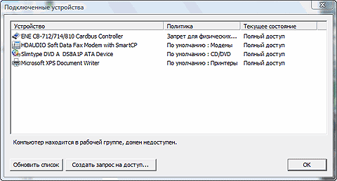 Есть и некоторые особенности контроля доступа. В частности, для сетевых устройств. Если для всех сетевых устройств назначен полный доступ всем пользователям (значение по умолчанию), модуль, отвечающий за контроль сети, не запущен. При этом сетевые карты в списке подключенных устройств отсутствуют.