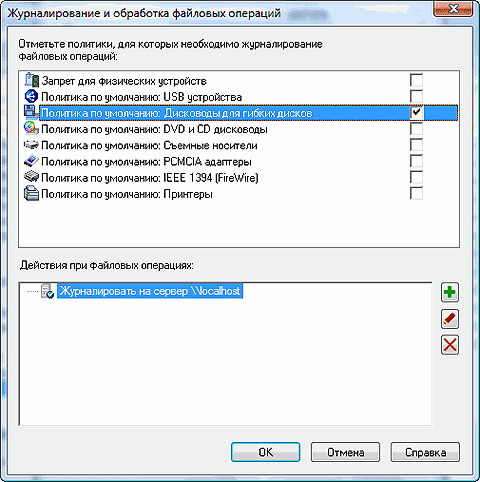 Правила доступа к устройствам включают в себя и дополнительные возможности. К ним относятся журналирование операций и теневое копирование файлов. Журналирование помогает вести учет всех обращений к файлам на контролируемых носителях и типов обращений - производится только чтение файлов либо копирование, перемещение или удаление. Результаты журналирования сохраняются либо на локальном компьютере, либо в базе MS SQL, либо на сервере журналов.
