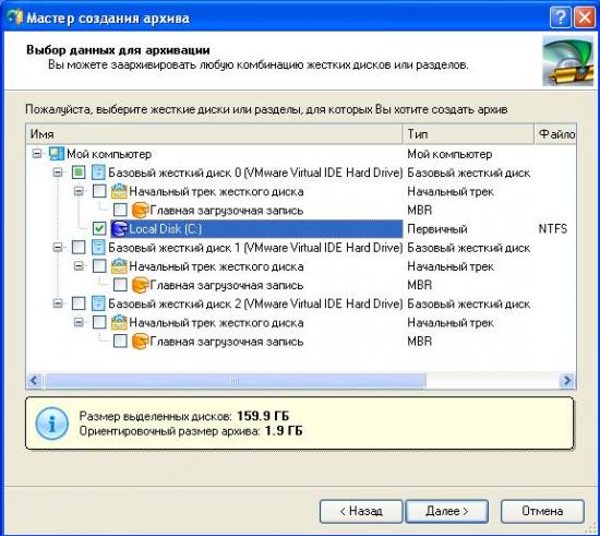 -Резервное копирование всего жесткого диска или отдельных