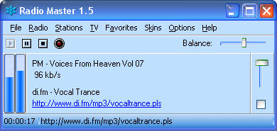 Radio Master - программа для прослушивания и записи радио и тв каналов. Доступно большое количество радиостанций (более 2300), в том числе и русских (более 900). Включает более 220 тв каналов (70 - русских). Записывает радио в форматах: mp3, ogg, wav. Позволяет сохранять названия треков с разными опциями, добавляя к названию трека, дату, номер. Радио-станции можно добавлять в закладки, для быстрого перехода. Программа ведет историю проигрываемых станций и сохраняет 10 последних. Позволяет регулировать громкость, баланс. Доступна визуализация данных в 3-х видах. Доступно несколько видов скинов. В настройках можно включить опцию прокси-сервера, если у вас интернет через прокси.