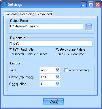 • Запись радио в mp3, ogg, wav