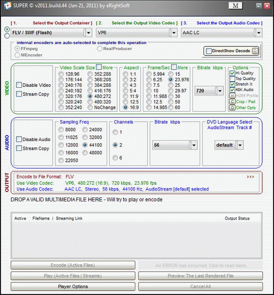 * SUPER предоставляет большое разнообразие кодеков аудио и видео с возможностью трансформации форматов файлов из одного в другой.