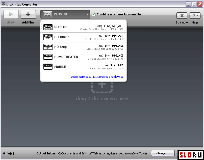 В качестве основы для формата DivX Plus HD выбран MKV. Теперь компонент DivX Converter позволяет конвертировать видео в DivX Plus HD (выходной файл MKV/H.264) полностью бесплатно. Стоит отметить, что обычный DivX с выходным файлом DivX/MPEG-4 ASP остается, конечно же, по-прежнему платным и имеет 15-ти дневный пробный период.