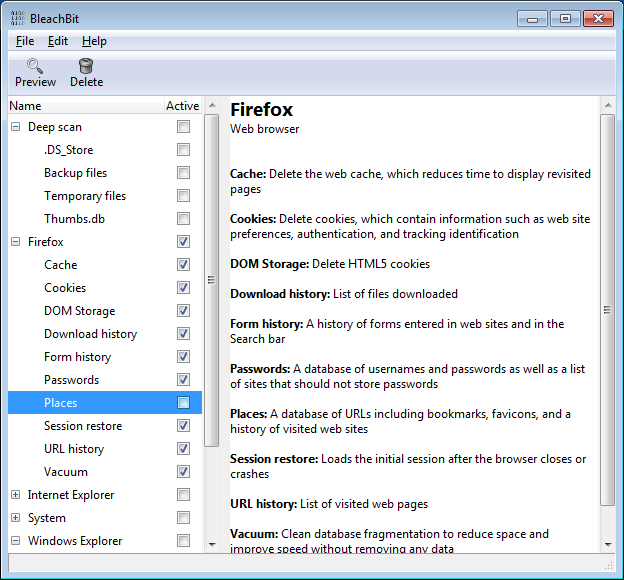 BleachBit - Утилита для очистки системы от ненужных и временных файлов, предназначенная для освобождения дискового пространства и обеспечения безопасной работы на чужом компьютере. Поддерживается работа на платформах Linux и Windows с более чем 50 наиболее популярными приложениями: Firefox, Internet Explorer, Flash, Google Chrome, Opera, Safari, Adobe Reader, APT, и многими др..