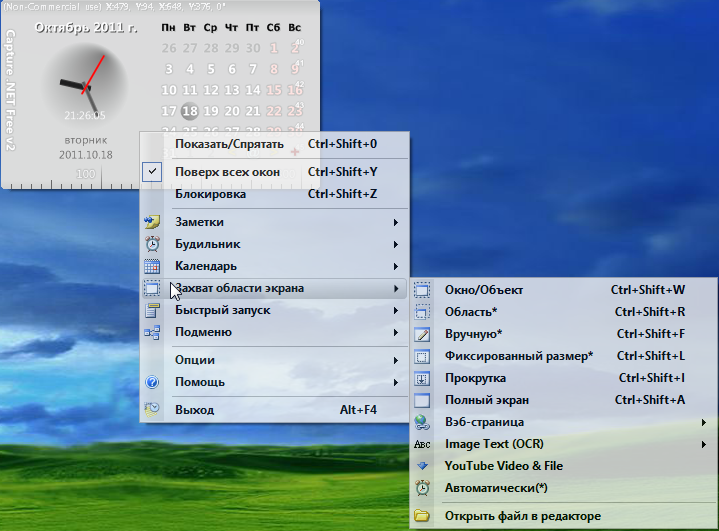 Capture. NET - небольшая, бесплатная и не требующая установки многофункциональная утилита-органайзер, объединяющая в себе множество возможностей, среди которых: