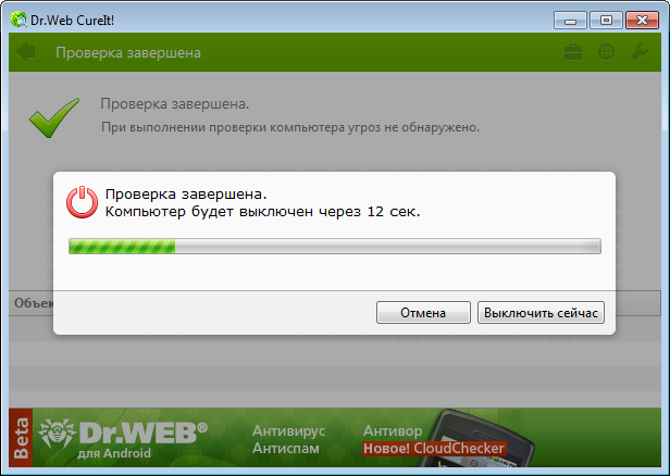 Стоит отметить, что в отличие от Антивируса Dr.Web, в утилиту Dr.Web CureIt! не входит модуль автоматического обновления вирусных баз. Поставляемый в комплекте Dr.Web CureIt! набор вирусных баз актуален только до выхода нового дополнения (обычно дополнения для вирусных баз выпускаются один или несколько раз в час). Поэтому, чтобы просканировать компьютер с использованием самых последних вирусных баз, необходимо снова скачать Dr.Web CureIt!.