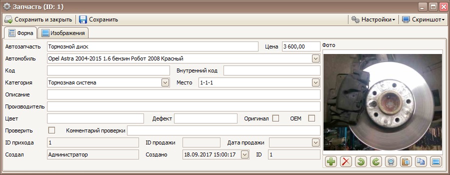 — Учет деталей и компонентов не связанных с авто донором. Новые или комиссионные запасные части